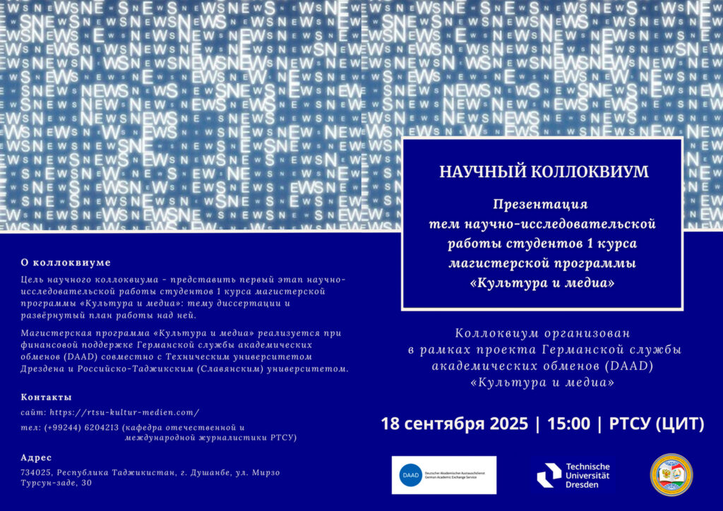 18 сентября 2025 годы студенты 1 курса магистратуры «Культура и медиа» под руководством доцентов Р. А. Вахидовой и Б. С. Мансуровой организовали научный коллоквиум. Магистранты представили темы своих научных исследований – магистерских диссертаций. На встрече присутствовали научные руководители студентов и – в режиме онлайн – преподаватели Института славистики[…]